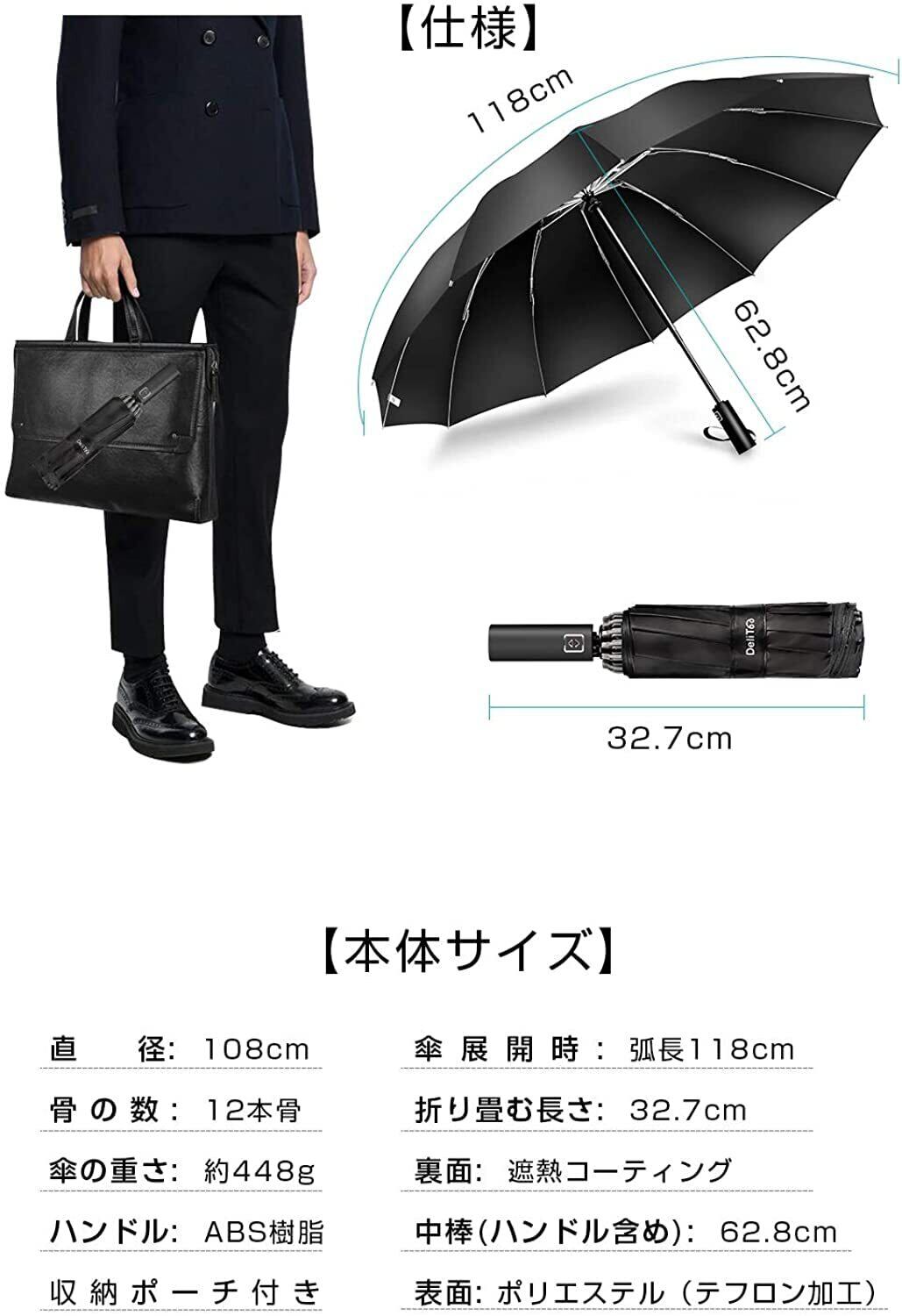 【超大サイズ・12本骨】 折りたたみ傘 ワンタッチ自動開閉 メンズ傘 大きい 逆折り式 折り畳み傘 風に強い テフロン加工 耐風撥水 丈夫耐久 折りたたみ日傘 遮光遮熱 UVカット 晴雨兼用傘 梅雨対策 台風対応 豪雨対応 メンズ レディース 収納ポーチ付き
