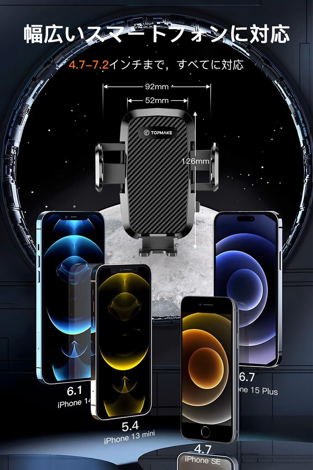 【取り付けが簡単】サイドボタンを片手で長押しすると、両側の翼がゆっくりと開き、片手操作が簡単で便利です。前面にシリコンパッド、背面にカーボンファイバーを採用したスタンドは、大切なスマートフォンを傷から守りながら、耐久性に優れているので、安心してお使いいただけます。