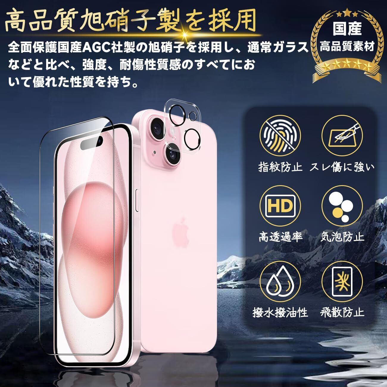 対応 iPhone 15 ガラスフィルム apple iphone15 ガイド枠付き 指紋防止 【2* フィルム + 2* レンズ保護フィルム+ 1*ガイド枠付き+ 1*取り除き発泡板】国産旭硝子材質 アイフォン15 薄型 強化ガラス iPhone15 保護フィルム 高光沢 いpほね15 液晶 ガラス ケース 9H硬度 厚さ0.26mm超薄型 高透過率 気泡なし ラウンドエッジ加工 簡単貼り付け 3D Touch対応 SENXLL-15G05