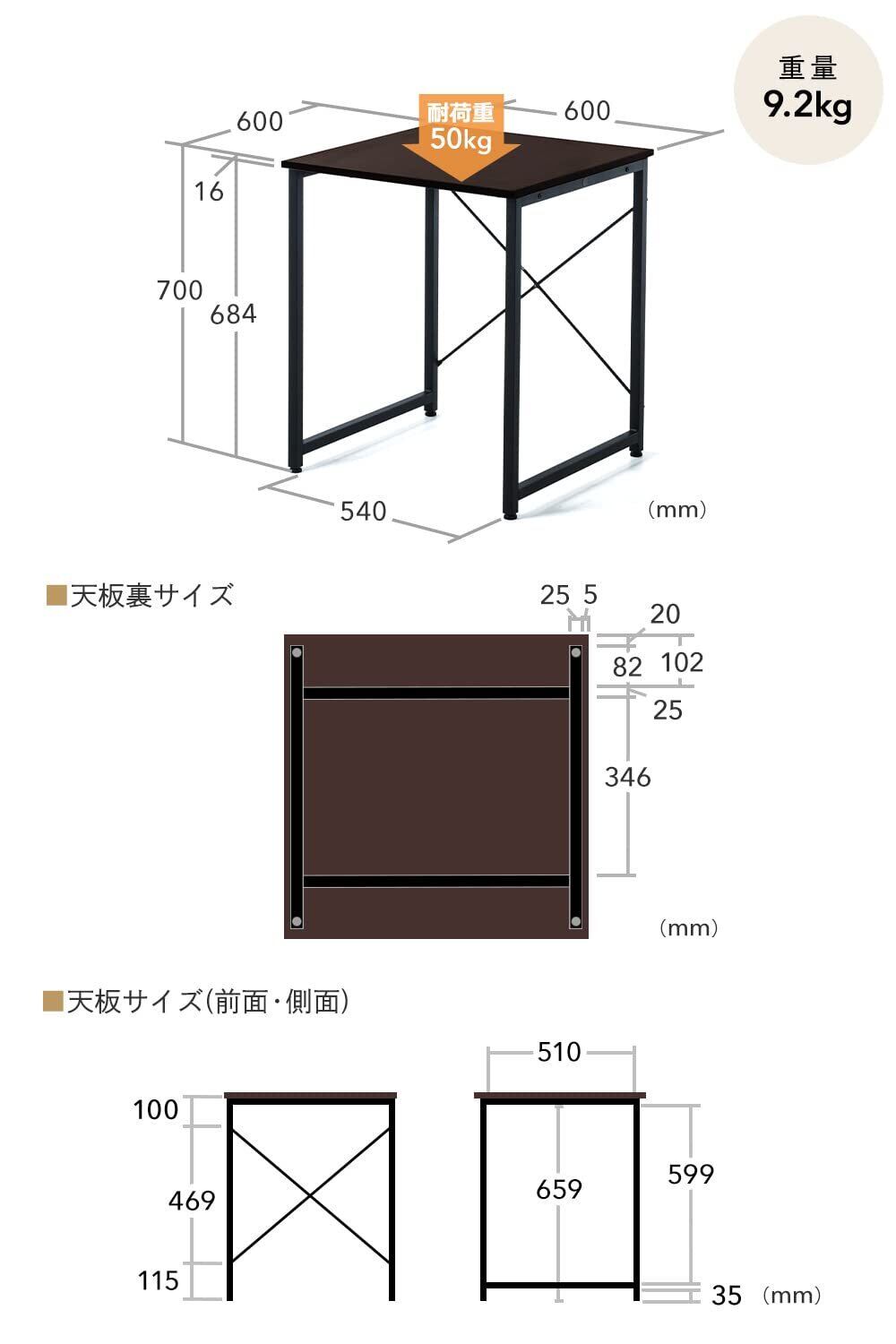 横幅60cm、奥行60cm、高さ70cmの コンパクト なデスク です。